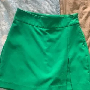 Kelly green skorts with a side zipper. Small slit in front to show the underneath. Size s