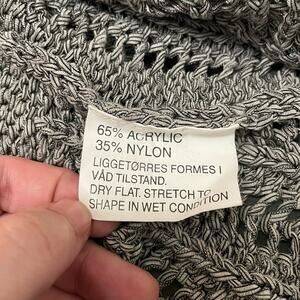 Gently worn long sleeve knit pullover sweater from Danish brand Skovhuus in a gray colorway. Design features beautiful openwork details at the collar, sleeve cuffs, and hemline.