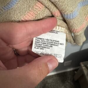 Skovhuus Multicolor Striped Knit Pullover Sweater in Women's Plus Size 2X. Crewneck, long sleeves, modest neckline. Pit to pit measures approx 24 in across & length from top of front shoulder to bottom hem measures approx 24 in. Top is in very good used condition with no flaws or stains other than some minor wash wear. Please see close-up pictures for condition details. 50% cotton, 50% acrylic blend.