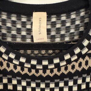 Skovhuus Nordic Print Black Tan Sweater L Danish Knitwear