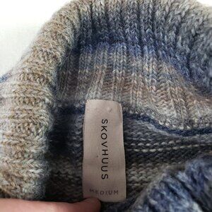 Skovhuus Wool Blend Sweater Womens Medium Blue Stripe Turtleneck Danish Pullover