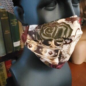 Cloth Bandit Face Mask with Filter pocket & 2 filters. These masks are double thick with a filter pocket and come with 2 filters, Silver and Copper Infused fabric. Wire along the top allows you to pinch the mask close to your nose. Ties behind your head and has elastic on the bottom so it can be untied and rest on your chest. Elastic on the sides minimize gaps along the cheek.