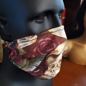 Cloth Bandit Face Mask with Filter pocket & 2 filters. These masks are double thick with a filter pocket and come with 2 filters, Silver and Copper Infused fabric. Wire along the top allows you to pinch the mask close to your nose. Ties behind your head and has elastic on the bottom so it can be untied and rest on your chest. Elastic on the sides minimize gaps along the cheek.