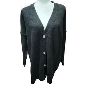 Skull Back Women’s Cardigan Sweater Button Front Long Black Gray 2X Goth Grunge