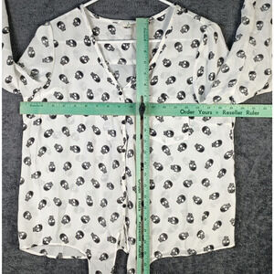 Skull Blouse Women Small White Semi Sheer Long Sleeve Goth Punk