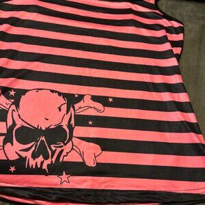 Skull & Bones Pink/Black Striped Skull Camisole Top Goth Emo Biker Style medium