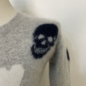 Skull Cashmere 100% Women's Crewneck Sweater X-Small XS Light Gray Blue Hearts