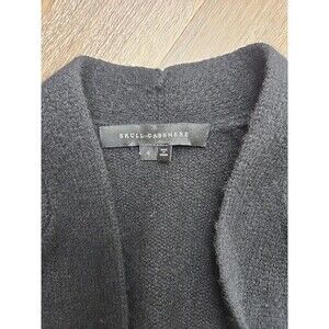 Skull Cashmere Black Long Open Front Cardigan Women's Small Fringe Hem L/S