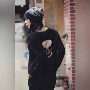 Skull Cashmere Cropped 100% Cashmere Textured Ribbed Sweater Intarsia Skull