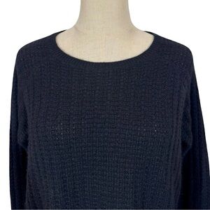 Beautiful 100% cashmere crewneck sweater with a cropped fit. Slightly chunky textured rib knit with intarsia knit skull in plight pink on the back.