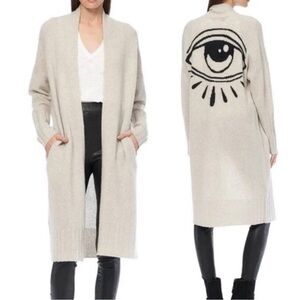 Skull Cashmere Jansen Eye Cardigan Duster Sweater Open Front Long Boho Cream XS