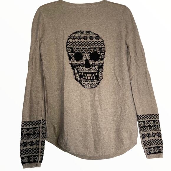 Skull Cashmere Sweater Tan Checkerboard Print S