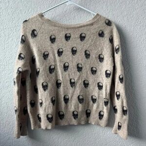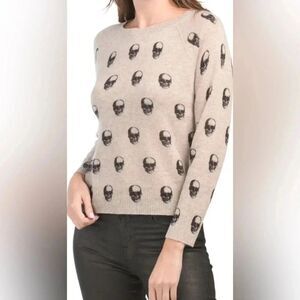 Skull Cashmere Tammy Print Crewneck Sweater Beige Black Size Small