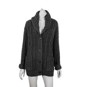 Skull Cashmere Women's Grandpa Cable knit shawl Cardigan oversized Size Small