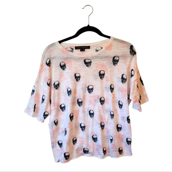 Skull Cashmere Women's White & Pink Tie Dye Skull Graphic T-Shirt Size M