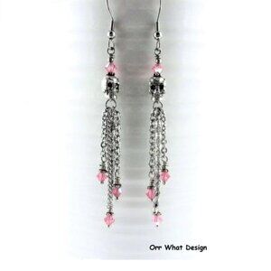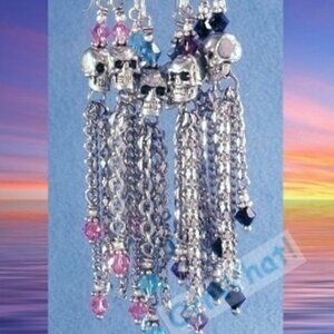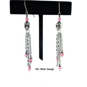 Skull Chains Pink Swarovski Crystal Earrings Silver Spooky Fun Jewelry Halloween