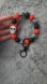 This stylish skull charm bracelet and keychain set features bold red and black colors. Perfect for adding a touch of edgy flair to any outfit.