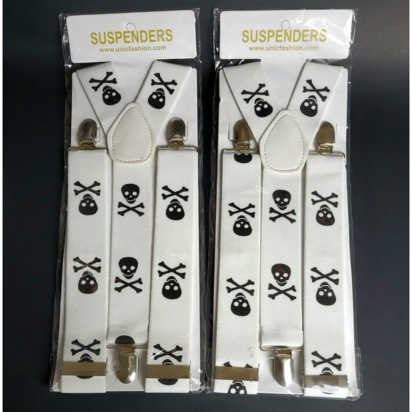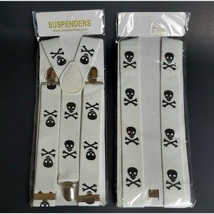 Skull & Cross Bones LOT 2 B & W Mens Suspenders Unicfashion Halloween Unisex New