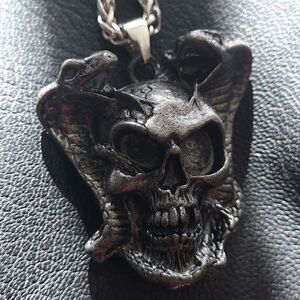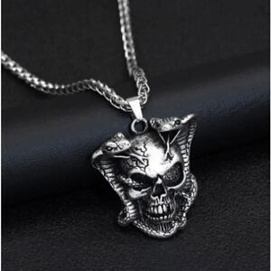 Skull Double Snake Stainless Steel Unisex Pendant Necklace