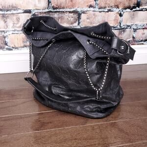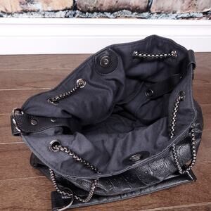 Skull Embossed Bucket Bag Tote Black Shopper Purse Chain Gothic Punk Alternative