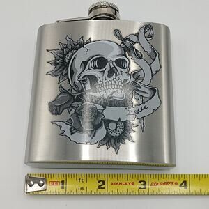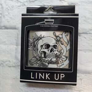 Skull Flask by Link Up 6 oz Stainless Steel Stocking Stuffer Halloween Goth Moto