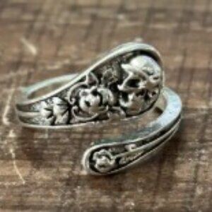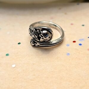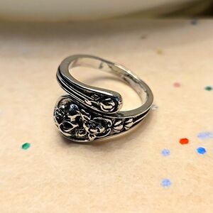 Skull Ghost Head Floral Spoon Ring Open Adjustable Zinc Alloy