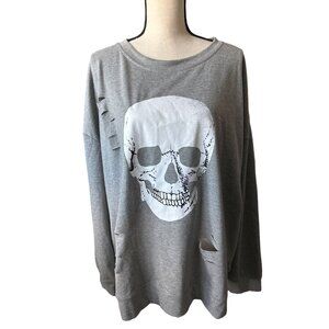 Skull Halloween Pullover Blooming Jelly Skull Gray Ripped Super Comfy Size XXXL