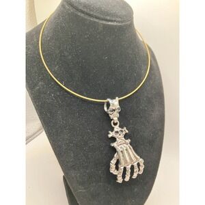 Skull Hand Large Charm Gothic on a Wire 8" Necklace!