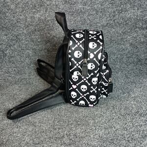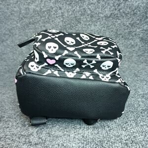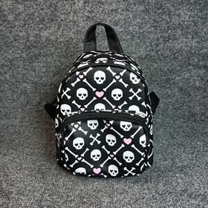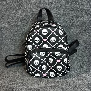 skull print backpack mini bag faux leather goth punk emo scene pastel goth kawaii pink heart crossbones edgy alternative grunge small travel daypack cute novelty accessory