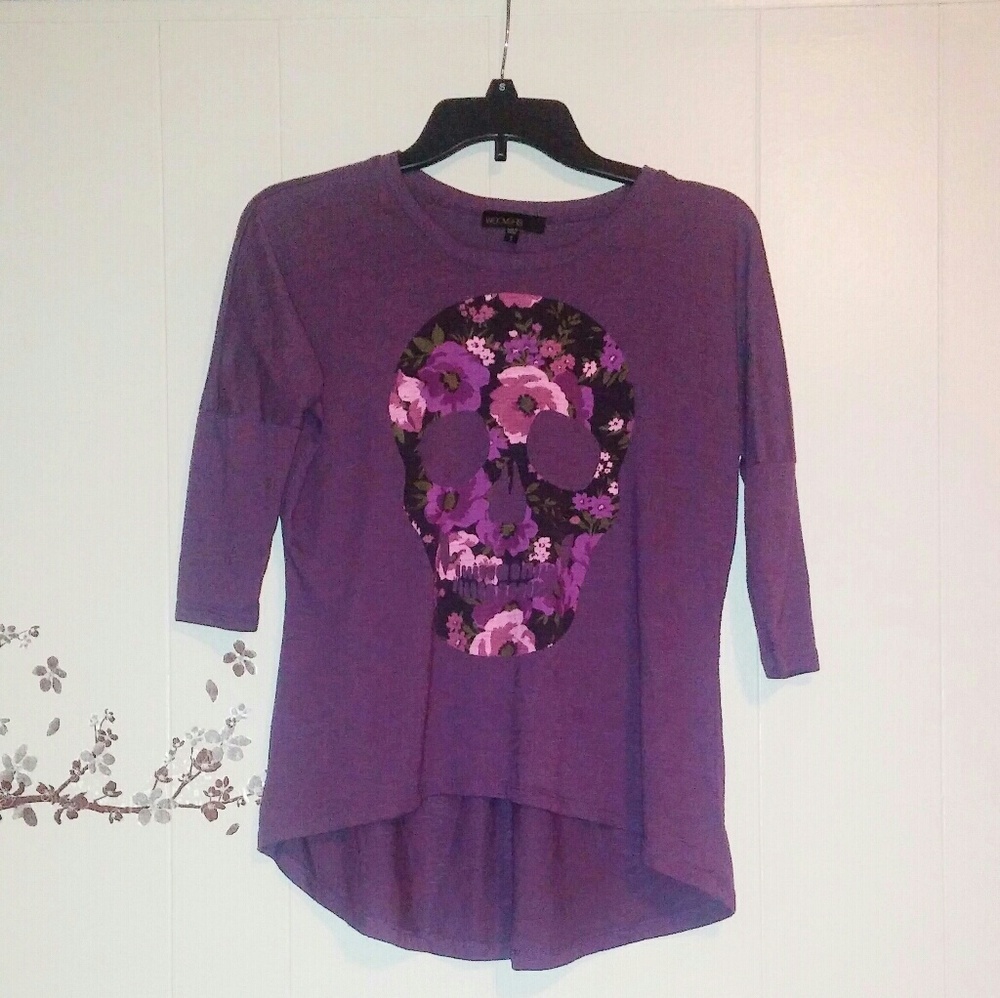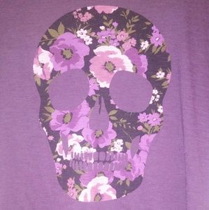 Floral skull on front.