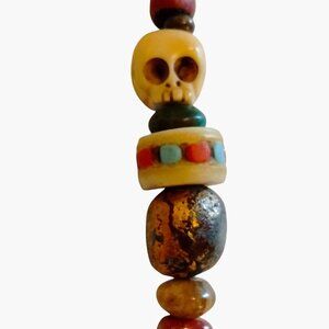 Skull Horse Fetish Bracelet Calaveras Vintage Handmade Beaded Charm Day of Dead