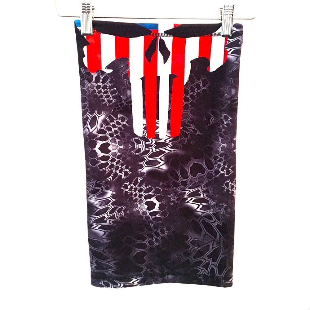 Skull American red white blue stripes face mask with adjustable interior strap for comfort 🇺🇸