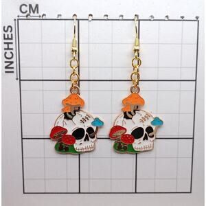 Make a bold statement with these skull and mushroom dangle earrings! Featuring colorful enamel details, they’re the perfect mix of spooky and whimsical — a must-have for Halloween and gothic fashion lovers.