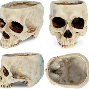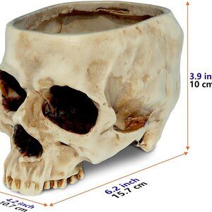 Skull Planter with Drain Hole, Resin Skull Shaped Flower Pot Candy Bowl, Gothic