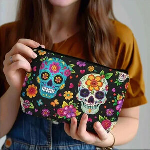 Skull Print Polyester Cosmetic Bag