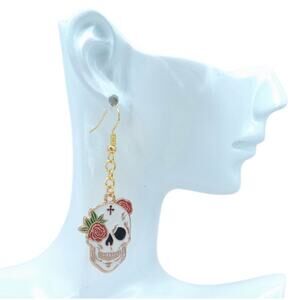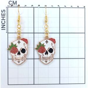 ✨ Striking skull earrings with red roses and black cross details. Perfect for Halloween, gothic outfits, or gifting. Adds a bold, edgy touch to any look.