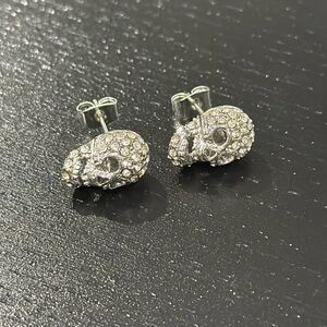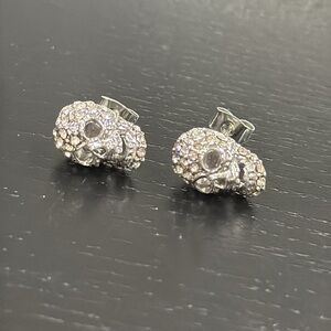 Skull Silver Stud Earrings. Silver with clear stones. No visible signs of use. No flaws. Please refer to photos for exact size, details, and condition.