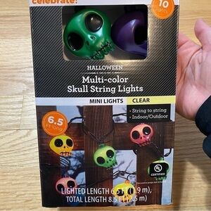 Skull String Lights NEW Halloween Decoration Multi Color Clear 8.5 ft Pink Green
