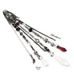 -I added silver skull beads and a skull rose and more fun styles throughout the piece.