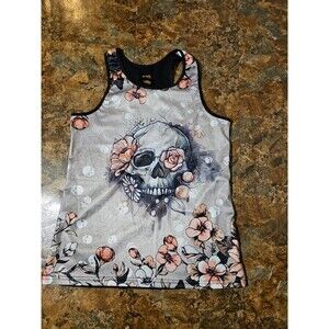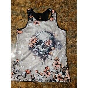 Skull Tank Floral Lace Back Lg Sister Army Tank Top (A182)