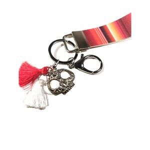 Skull Tassel Wrist Holder Keychain Red White Orange
