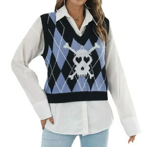 Skull Jacquard Diamond Plaid Sweater Vest