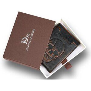 Skull Wallet for Men with Money Clip Genuine Leather Bifold RFID Blocking Mens