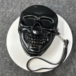 Skull Wristlet Women's Halloween Black Glossy Molded Purse Removable Strap