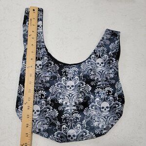 Skull and Floral Fabric Tote Bag Double Handles Goth Emo Grunge Bag