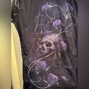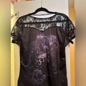 Black and purple lace top with skull and rose design NWOT SMOKE FREE HOME #goth #grunge #emo