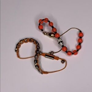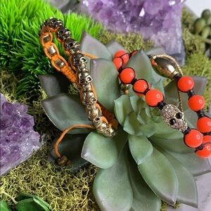 Skull punk rock accessories skinny pink orange Bead Bracelet Set adjustable