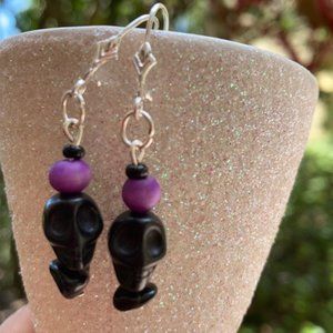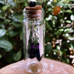 Skull purple Halloween 💀 earrings handmade. Come in bottle crystal vial with cork top decor. Wood, Acrylic, Metal. Eco-friendly, nickel-free and lead-free, hypoallergenic and don’t irritate your skin, lightweight and comfortable to wear, durable and can be used for a long time. *We always use high quality material in our products.