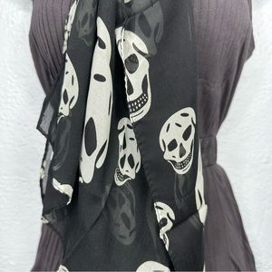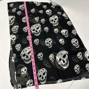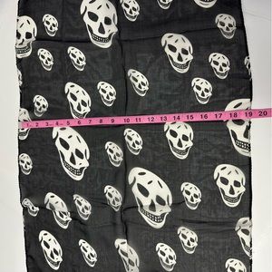 NEW Skull scarf silky skull fabric, you use as table runner! Fun for Halloween. Approximately 19” wide x 58” long. See photos (length measured with scarf folded in half).