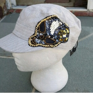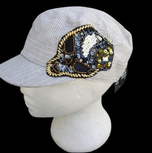 Skull sequin stripe cotton baseball cap NWT